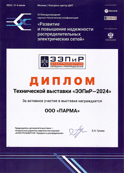 Диплом международная выставка и XXI конференция "Релейная защита и автоматика энергосистем 2012"