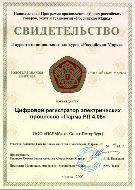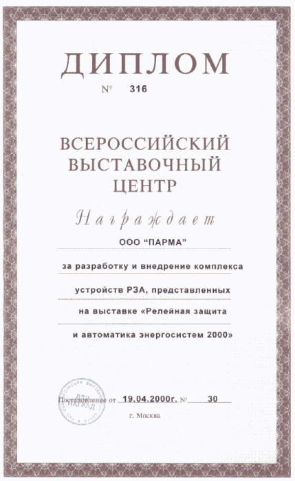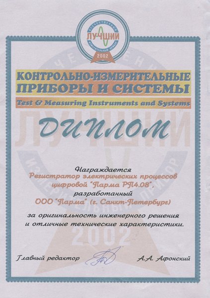 Диплом "За оригинальность инженерного решения ПАРМА РП4-08"