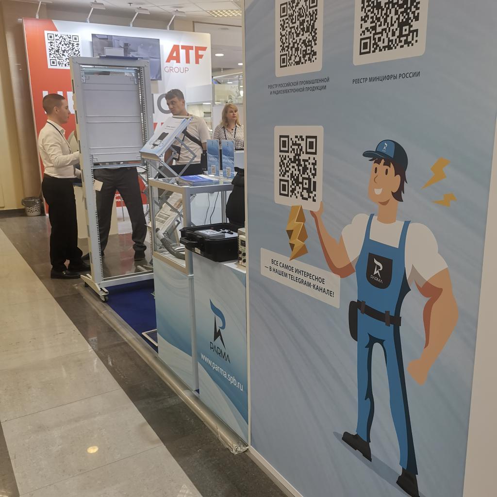 Наш стенд стал центром внимания, где участники выставки смогли ознакомиться с современными устройствами и программным обеспечением. Мы представили: 1. аналого-цифровой регистратор аварийных событий ПАРМА РП 4.11, выполняющий функции РАС, МИП, УСВИ для СМПР (WAMS), ОМП; 2. кроссплатформенное ПО «TRANSVISION» для автоматизированного централизованного сбора и хранения данных аварийных событий (согласно ГОСТ Р 59550-2021) с устройств РАС, РЗА, ПАА, ОМП, и организации их просмотра через веб-интерфейс, а также обеспечения периодического контроля состояния РАС производства ПАРМА; 3. 8-канальный переносной регистратор аварийных и нормальных режимов «ПАРМА РАС ВАФ-А(М2)» с функционалом трехфазного вольтамперфазометра; 4. комплекс мониторинга температуры (нагрева) контактных соединений и токоведущих частей энергетического оборудования 0,4-35 кВ «ПАРМА КМТ»; 5. измеритель параметров изоляции силового оборудования «ПАРМА ТЕНЗОР-2».